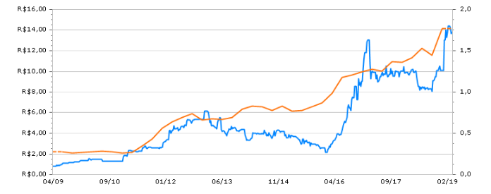 P/vpa = cotação da ação / valor ativo tangível (por ação).